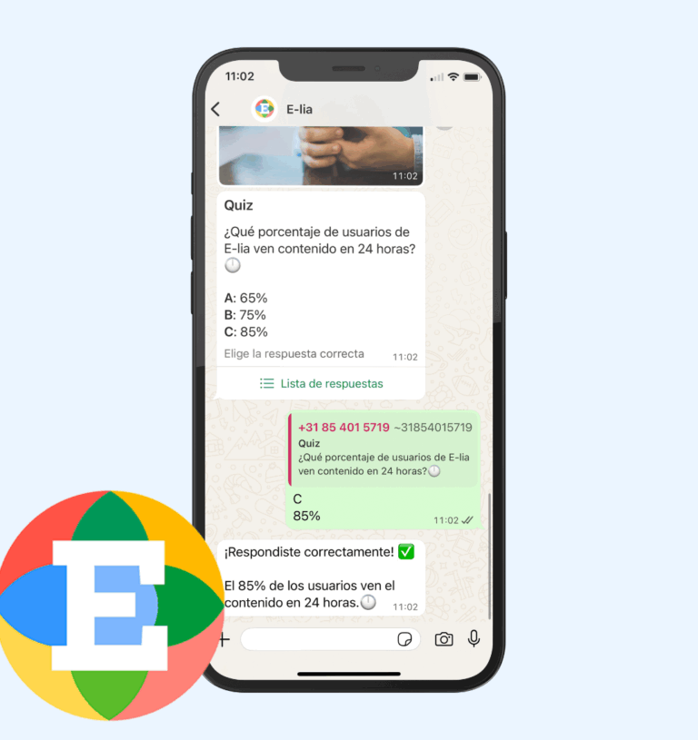 Con E-lia transformas la forma en que tu organización aprende y se comunica. WhatsApp hace que el aprendizaje sea accesible, flexible y asequible.