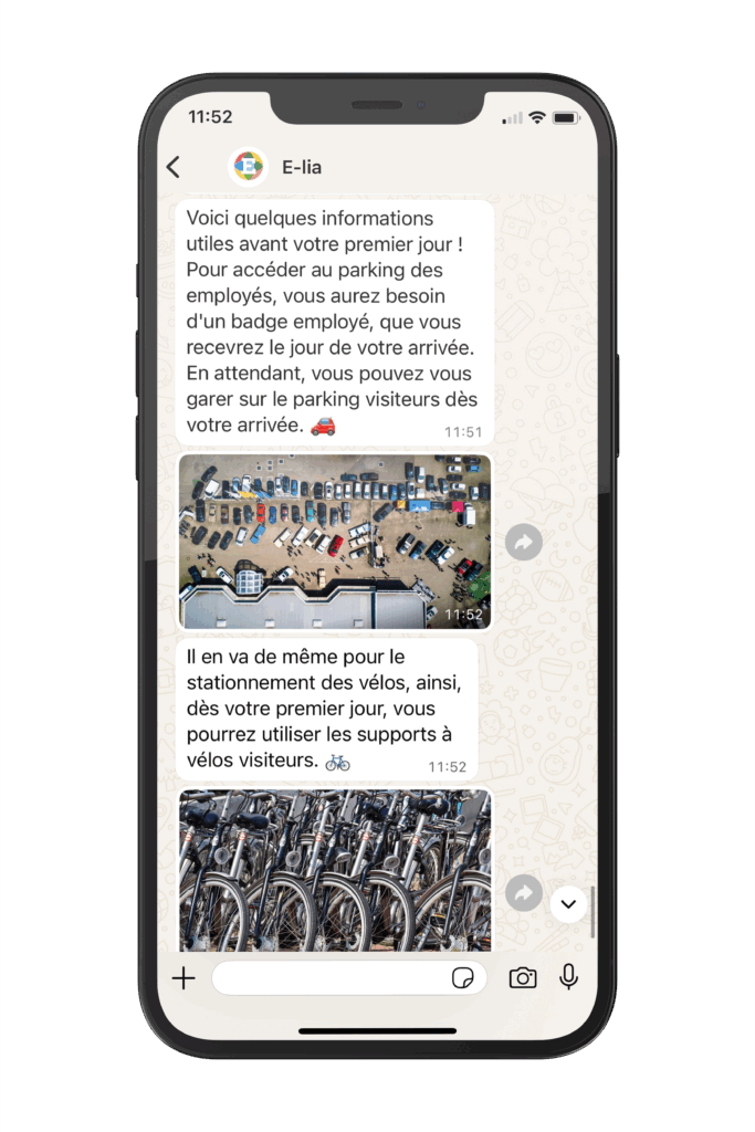 La incorporación vía E-lia ofrece una forma inteligente y eficiente de familiarizar rápidamente a los nuevos empleados con tu organización. Con E-lia, las empresas pueden optimizar todo el proceso de incorporación utilizando la plataforma de comunicación más usada: WhatsApp.